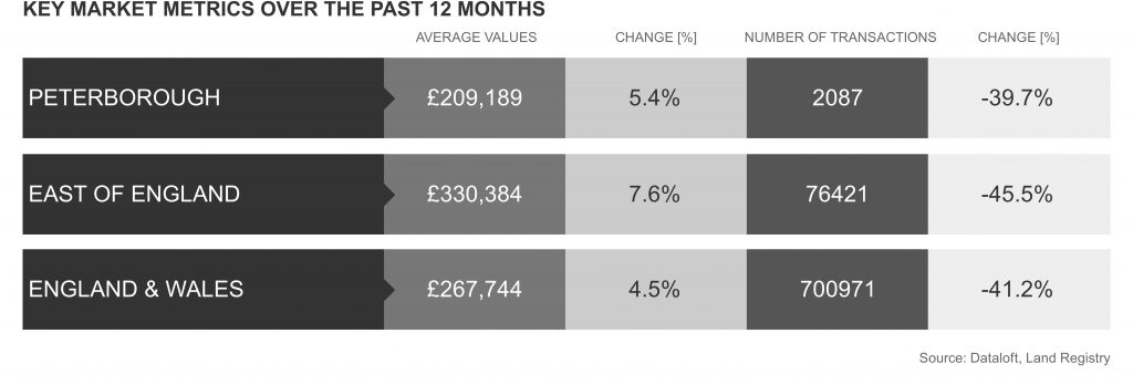 In Peterborough the increase in house prices has been influenced by the decrease in transactions over the previous twelves months whilst experiencing a high demand from buyers into the start of September. This has now changed with a normal number of buyers with choice going into 2023.